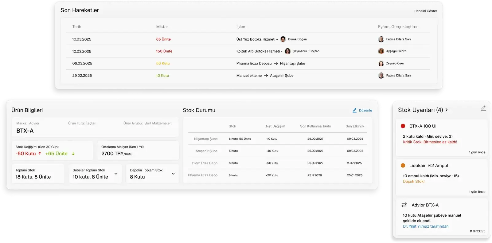 Danışan kayıtları, hizmet geçmişi, stok takibi… Medikal estetik merkezinizin tüm süreçleri tek bir kusursuz platformda. Kliniğinizin kontrolünü ele alın, kalitenizi yansıtın.