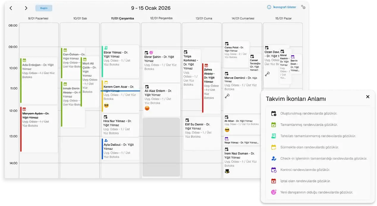 Gelmeyen danışanları takip eden, randevularınızı kategorilendiren ve randevu süreçlerinizin bütün hakimiyetini ele alan akıllı takviminizle keyfinize bakın.